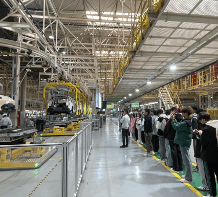 25级机器人工程专业1-2班的同学们满怀好奇与期待,奔赴广汽埃安新能源汽车股份有限公司长沙分公司,开启了一场沉浸式专业见习之旅。这场与行业一线的亲密接触,让同学们跳出课本框架,直观感受科技与制造碰撞的无限魅力。
