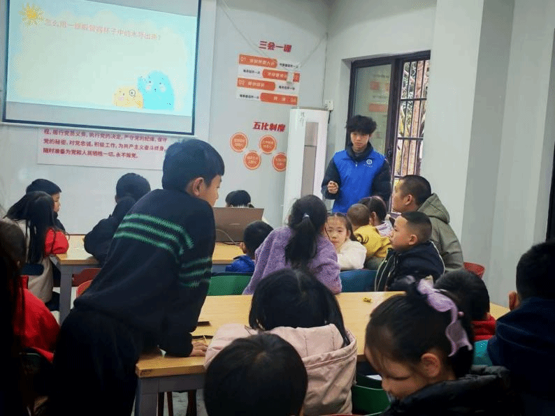 青年志愿者协会携手麓谷街道桔苑社区,开展第一期“智”愿“童”行社区志愿服务活动,本次活动以“童心润工科,志愿护家园”为主题,在志愿者的带领下,孩子们近距离邂逅工科趣味,学习水果电池(原电池)的结构、虹吸等科普知识,以工科技能传递温暖、服务他人,让志愿之光在实践中绽放。