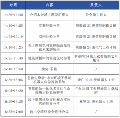 下午14:30,别围绕“学术创新”与“竞赛创业”两大主题,论坛开启平行分会场阶段。“学术创新分会场”、“竞赛创业分会场”两个专场均由学生团队负责具体组织与协调。