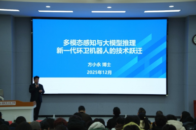盈峰环境智能技术中心副主任方小永博士做题为“多模态感知与大模型推理:新一代环卫机器人的技术跃迁”的精彩报告,分析了环卫装备具身智能、大模型等前沿技术的最新进展与突破,为同学们理解所学知识在具体产业的应用落地提供了绝佳案例。